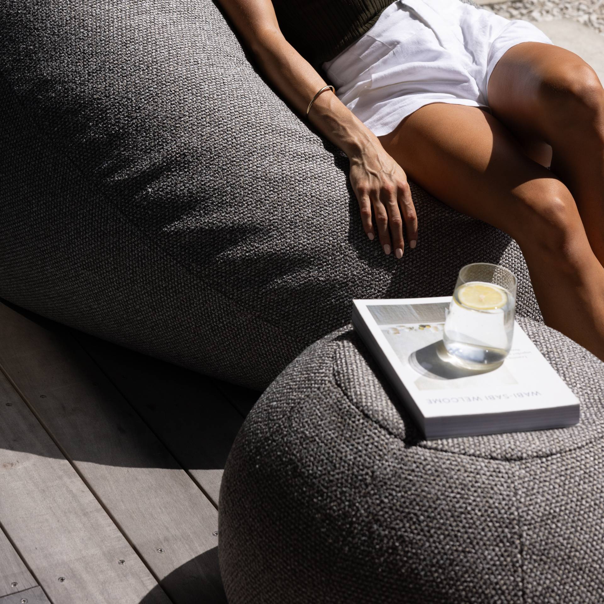 Hand-crafted in New Zealand using texturally sophisticated Mokum® Ostuni fabrics woven in Italy, this latest fabric addition to our Indoor X Out bean bag range sets the new standard for luxurious outdoor lounging.